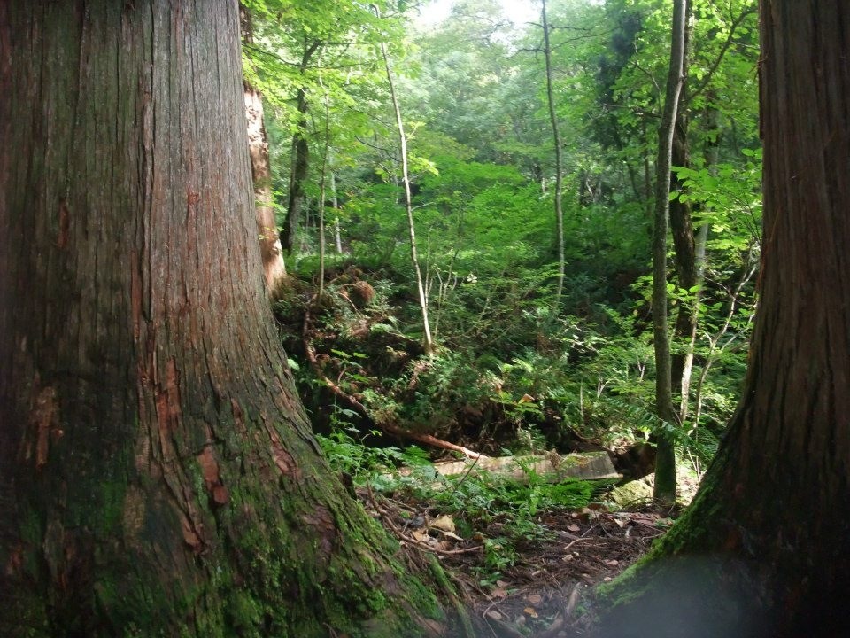 ほぼ下へ降りた時には、誰も汚す事のない山の中で伸び伸び育った大きな木に見惚れていました。