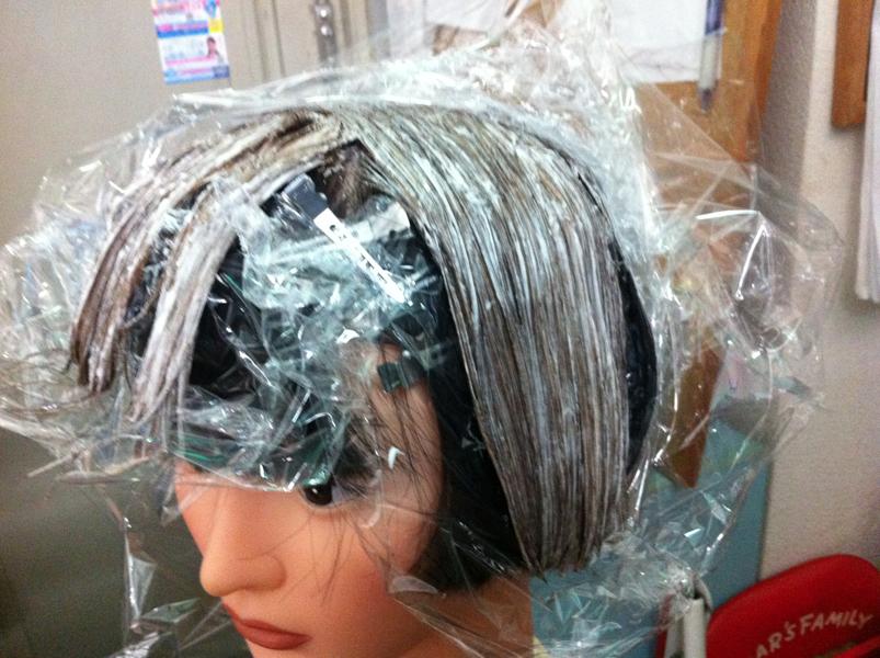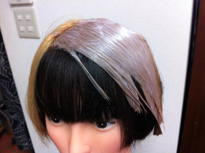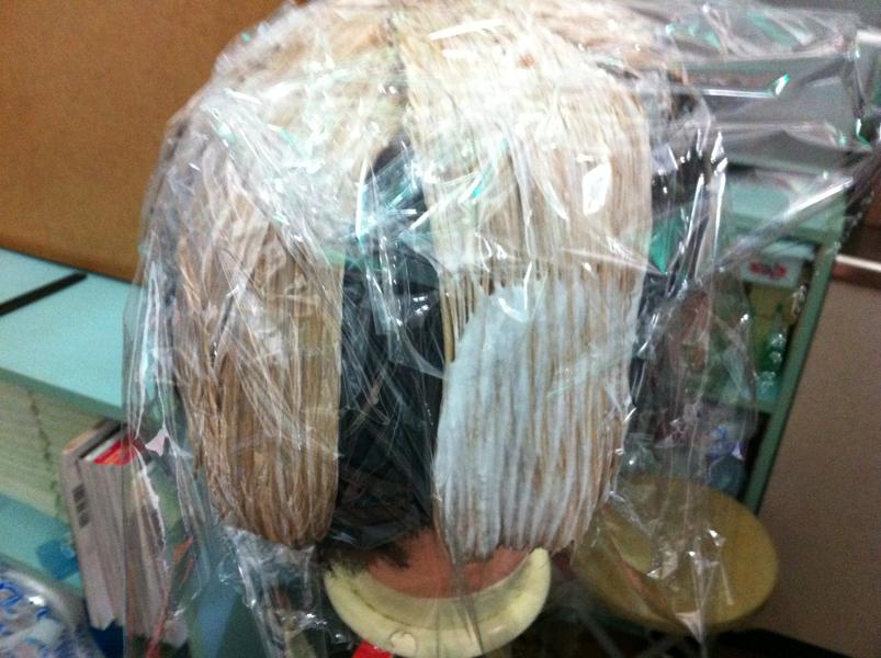 結局ブリーチ塗って 30分置いて流し、またブリーチして30分置いて流しを3度繰り返し。。。