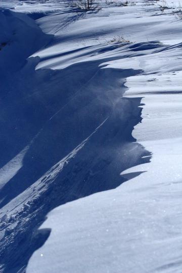 これは雪庇という風が雪を運んで雪が着きどんどん迫り出して行くどこでもよく見る現象。