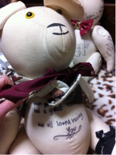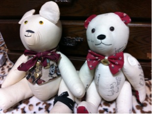 テディベアに家族や友達の心のこもったメッセージを書いて贈るんです。